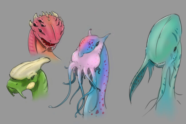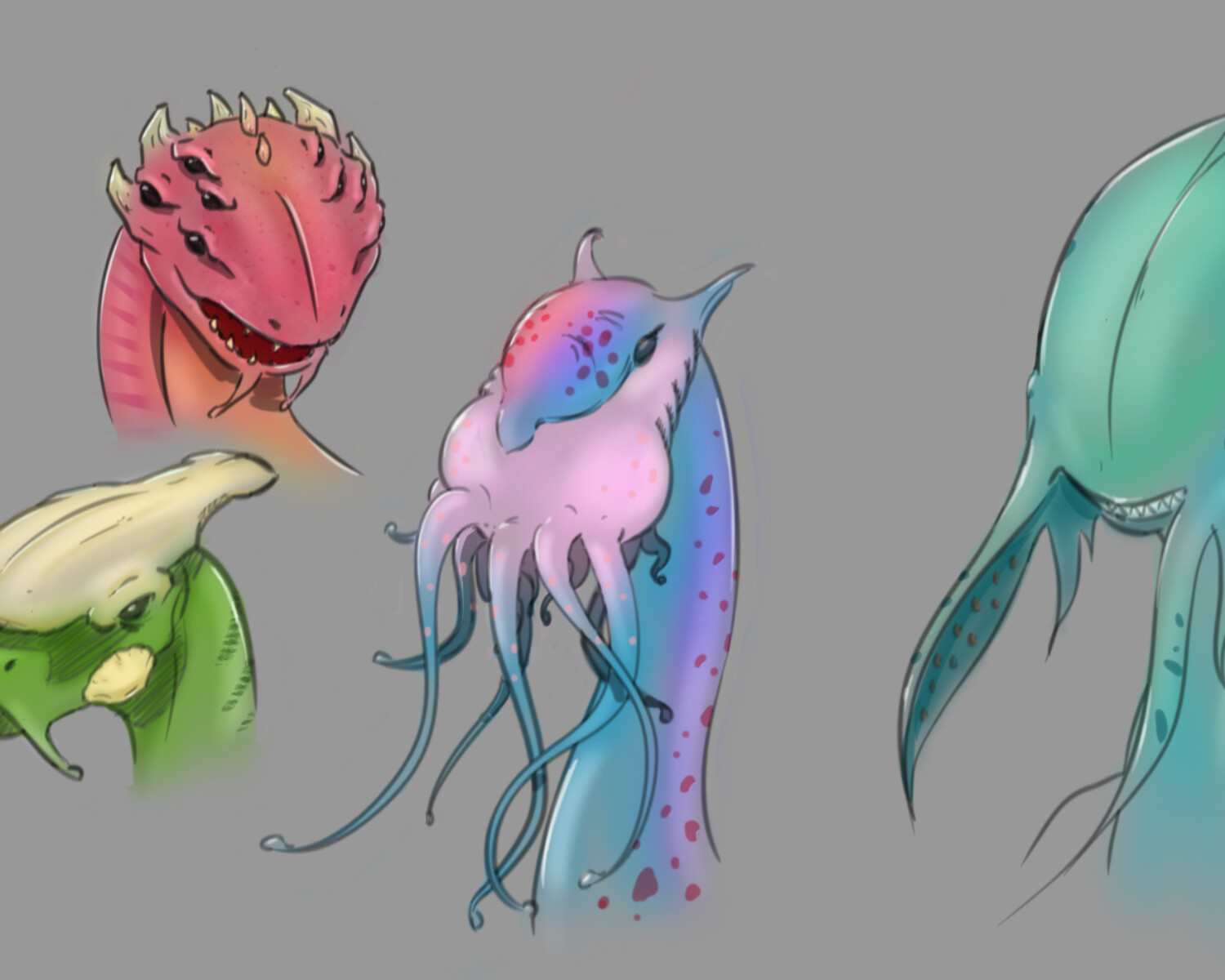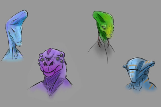 Disseny de personatges per a una producció de ciència-ficció. El projecte requeria la creació de diverses espècies alienígenes amb personalitats i morfologies diferenciades, explorant tant l’anatomia com el llenguatge visual de cada raça.